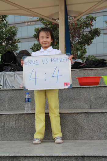 下午兩點(diǎn)整,銀豐的健兒們已早早來到了操場,進(jìn)行著積極的熱身運(yùn)動,和啦啦隊(duì)們一樣,大家都十分期待這次比賽。兩點(diǎn)三十分,比賽在裁判的一聲哨響中開始了。雙方球員很快進(jìn)入了比賽狀態(tài),球場上身穿綠色球衣的銀豐隊(duì)員們面對一上場就攻勢凌厲的科菲達(dá)球員毫不示弱,他們細(xì)膩的腳法與巧妙的配合,讓看臺上的啦啦隊(duì)們的吶喊聲越來越響亮?品七_(dá)的男兒們也表現(xiàn)出了不俗的實(shí)力,他們默契的配合和縝密的隊(duì)形部署很快就贏得了上風(fēng)。面對實(shí)力不凡的對手,銀豐的隊(duì)員們在中場休息時迅速做了相應(yīng)的戰(zhàn)術(shù)調(diào)整,在下一輪的比賽中扳回了優(yōu)勢,最終以完美的4:4分結(jié)束了比賽。