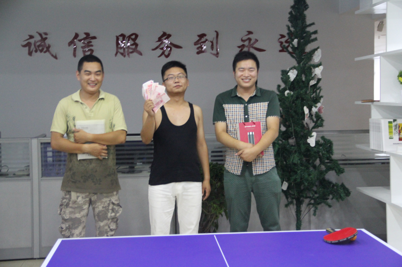 為豐富公司同仁們的業(yè)余生活,促進(jìn)部門(mén)同事之間的交流,展現(xiàn)銀豐人積極進(jìn)取、團(tuán)結(jié)向上的精神風(fēng)貌,進(jìn)一步增強(qiáng)企業(yè)凝聚力,2014年7月5日,銀豐公司舉辦了本年度第一屆乒乓球比賽。 下午兩點(diǎn)整,比賽在銀豐公司大廳正式開(kāi)始,首先進(jìn)行的是女子組的比賽,本著“友誼第一,比賽第二”的原則,女生們在輕松、友好的氣氛中開(kāi)始了比賽,經(jīng)過(guò)緊張激烈的角逐,女子組冠亞季軍產(chǎn)生了,她們分別是公司董事長(zhǎng)、副總經(jīng)理以及財(cái)務(wù)部程霖。 隨后是男子組比賽,男單組比賽更是扣人心弦,賽事激烈,經(jīng)過(guò)激烈的競(jìng)爭(zhēng),最后男子組冠亞季軍也相繼產(chǎn)生,他們分別是業(yè)務(wù)部行業(yè)經(jīng)理張梟、銀豐辦公室司機(jī)杜俊非以及照明事業(yè)部銷(xiāo)售專(zhuān)員牛永恒。公司為參賽選手準(zhǔn)備了豐厚的禮品,董事長(zhǎng)親自為男單組冠軍頒發(fā)1000元現(xiàn)金獎(jiǎng),并為亞軍和季軍頒發(fā)了精美的獎(jiǎng)品。 此次乒乓球賽豐不僅豐富了同仁們的業(yè)余生活,更增進(jìn)了員工之間的感情,公司領(lǐng)導(dǎo)充分肯定了這次比賽的價(jià)值并對(duì)獲獎(jiǎng)的同仁們表示了真誠(chéng)的祝賀!