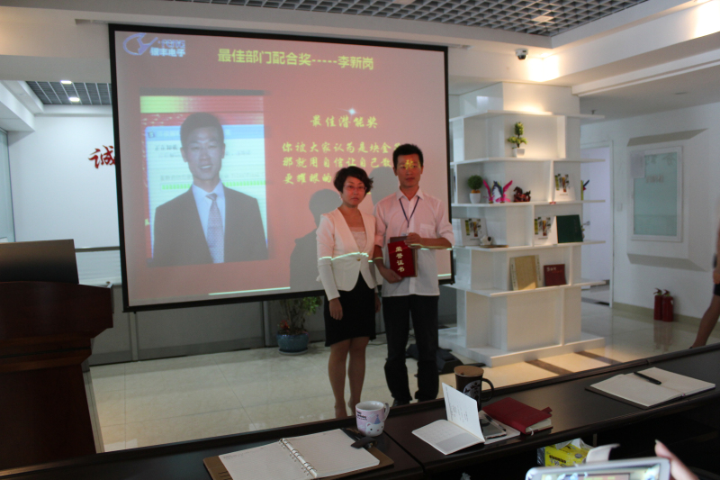 2014年8月2日,銀豐之家7月份銷售表彰大會在公司大廳隆重召開。參加此次大會的領(lǐng)導(dǎo)有公司董事長、總經(jīng)理、副總經(jīng)理以及銀豐的全體同仁,大家共聚一堂,總結(jié)過去、續(xù)寫未來。 大會由行政部柴孟來主持,會議主要對剛剛過去的7月份銷售業(yè)績比較突出的同仁及最佳配合部門進(jìn)行表彰和獎勵。金色7月、碩果累累,其中7月份銷售冠軍、業(yè)務(wù)部行業(yè)經(jīng)理謝遠(yuǎn)飛更是業(yè)績出色,銀豐公司副總經(jīng)理周輝女士親自為獲獎人員頒發(fā)獲獎證書及獎品,并對他們表示祝賀。隨后,獲獎人員發(fā)表了自己的獲獎感言,并對本部門及公司其他部門同仁的配合表示感謝,同時也希望自己能夠再接再厲,再創(chuàng)輝煌。 頒獎儀式過后,銀豐公司總經(jīng)理王偉東先生做了總結(jié)性發(fā)言,一方面對此次受表彰人員所取得的成績表示充分的肯定與贊揚(yáng);另一方面對其它部門默契的配合、付出表示感謝。銀豐之家是一個充滿激情與正能量的團(tuán)隊,相信在公司領(lǐng)導(dǎo)的帶領(lǐng)下,銀豐公司的明天會更好!