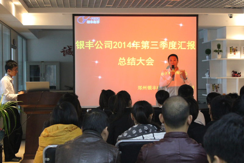 為幫助銀豐同仁們制定合理的工作計(jì)劃及目標(biāo),激發(fā)同仁們的工作熱情,同時(shí)使銀豐同仁明確公司未來(lái)發(fā)展方向,2014年11月1日,銀豐公司舉行了隆重的表彰及第三季度總結(jié)大會(huì)。 上午九點(diǎn),表彰大會(huì)在銀豐公司大廳正式召開,此次參會(huì)的領(lǐng)導(dǎo)有公司董事長(zhǎng)、總經(jīng)理、副總經(jīng)理以及各部門經(jīng)理、同仁。此次受表彰的是在2014年9月、10月有突出銷售業(yè)績(jī)及參與項(xiàng)目各個(gè)環(huán)節(jié)的銀豐同仁們。公司副總經(jīng)理周輝女士親自為獲獎(jiǎng)人員頒發(fā)獲獎(jiǎng)證書及獎(jiǎng)品,隨后獲獎(jiǎng)同仁們精彩的獲獎(jiǎng)感言贏得了陣陣掌聲。頒獎(jiǎng)結(jié)束后,銀豐公司董事長(zhǎng)做了總結(jié)性的發(fā)言,鼓勵(lì)銀豐的銷售同仁們向更大的目標(biāo)奮進(jìn)。 表彰大會(huì)結(jié)束后,緊接著是銀豐公司2014年第三季度員工匯報(bào)及總結(jié)大會(huì),員工們對(duì)自己上一季度的工作做了概括性的總結(jié),并對(duì)下一季度的工作做了詳細(xì)的計(jì)劃,同仁們匯報(bào)完后,銀豐公司總經(jīng)理王偉東先生做了精彩的總結(jié),一方面對(duì)此次匯報(bào)中所出現(xiàn)的問題進(jìn)行分析并提出合理建議;另一方面為員工以后的工作指明了方向,會(huì)議最后,銀豐公司董事長(zhǎng)做了重要的講話,首先闡述了公司日常規(guī)定的重要性及長(zhǎng)遠(yuǎn)性,隨后用銀豐公司中層領(lǐng)導(dǎo)真實(shí)的奮斗經(jīng)歷誠(chéng)懇風(fēng)趣的表達(dá)了堅(jiān)持不懈的努力是成功必要條件,公司頓時(shí)處于一種激情澎湃,斗志昂揚(yáng)的正能量之中。 我們堅(jiān)信,在公司領(lǐng)導(dǎo)的正確指引及銀豐同仁們的不懈努力下,銀豐公司未來(lái)的發(fā)展定會(huì)按照我們規(guī)劃的目標(biāo)穩(wěn)步實(shí)現(xiàn)。