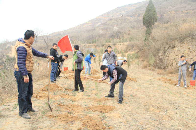 春回大地萬物蘇,植樹踏青好時(shí)節(jié)。 一年一度的植樹節(jié)又到來了!始終提倡“綠色環(huán)保,健康生活”的銀豐公司再一次以植樹活動(dòng)為契機(jī),圍繞“多一片綠葉,多一份溫馨”的主題,為創(chuàng)建綠色環(huán)境貢獻(xiàn)自己的一份力量。 2015年3月14日的早晨7點(diǎn)整,銀豐公司的義務(wù)植樹車隊(duì)排成一條長龍,浩浩蕩蕩的向目的地“滎陽市崔廟鎮(zhèn)索坡村義務(wù)植樹基地”有序的出發(fā)。到達(dá)目的地之后,植樹小組組長立即有序地安排本組人員的任務(wù)分工,隨后便進(jìn)入了熱鬧朝天的植樹活動(dòng)之中。你挖坑、我提水、他取苗,井然有序的分工使得熱鬧的氣氛中不顯一絲慌亂,拎著桶桶滿溢的水,提著棵棵清脆的樹,挖著均勻整齊的坑,回蕩著經(jīng)久不散的笑聲,整個(gè)山坡呈現(xiàn)出一派火熱的勞動(dòng)景象。最后在各組人員熱情積極的努力下,我們僅用一個(gè)小時(shí)的時(shí)間便超額超量的完成了今年的植樹任務(wù)。 隨后便進(jìn)入了本次植樹活動(dòng)的“陽春三月來踏青,美味趣事共分享”特殊環(huán)節(jié),所有同仁都獻(xiàn)出自己了的拿手菜、零食、特產(chǎn)等食物和大家一起分享,分享的同時(shí)讓銀豐家人間的感情更加和睦、融洽,也使得大家充分感受到分享帶來的快樂。 本次活動(dòng)在一片歡聲笑語之中順利圓滿結(jié)束,意猶未盡的歡樂使本次植樹踏青活動(dòng)的意義得到充分體現(xiàn),真正做到了快樂工作,健康生活!